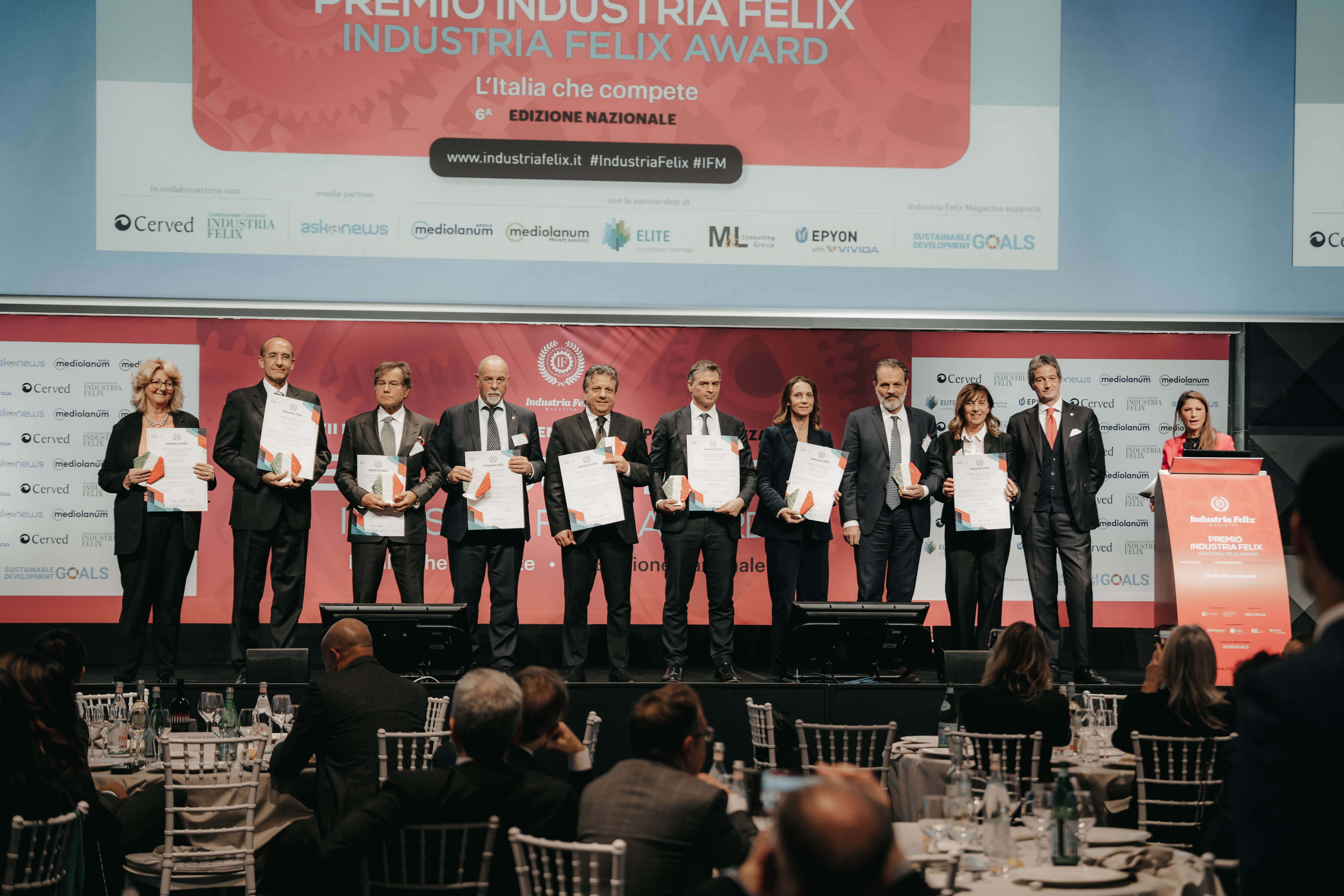 Giovedì 11 dicembre 2025, presso il monumentale edificio del Palazzo Mezzanotte a Milano, ritiriamo il riconoscimento insieme a una selezione ristretta di imprese italiane che si distinguono per solidità economico-finanziaria, misurata attraverso gli indicatori del Cerved Group Score.